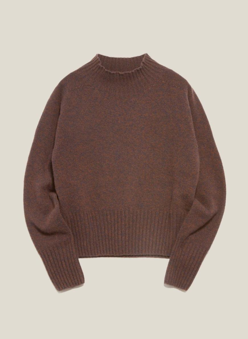 High neck jumper made using a soft blend of cashmere and ultrafine merino wool.