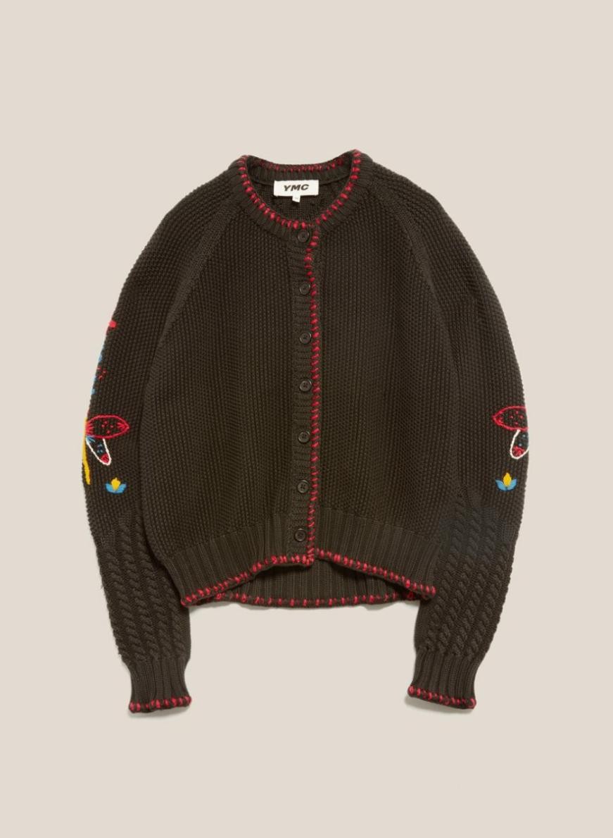 Schwarze Strickjacke mit Lotusstickerei | Damen YMC