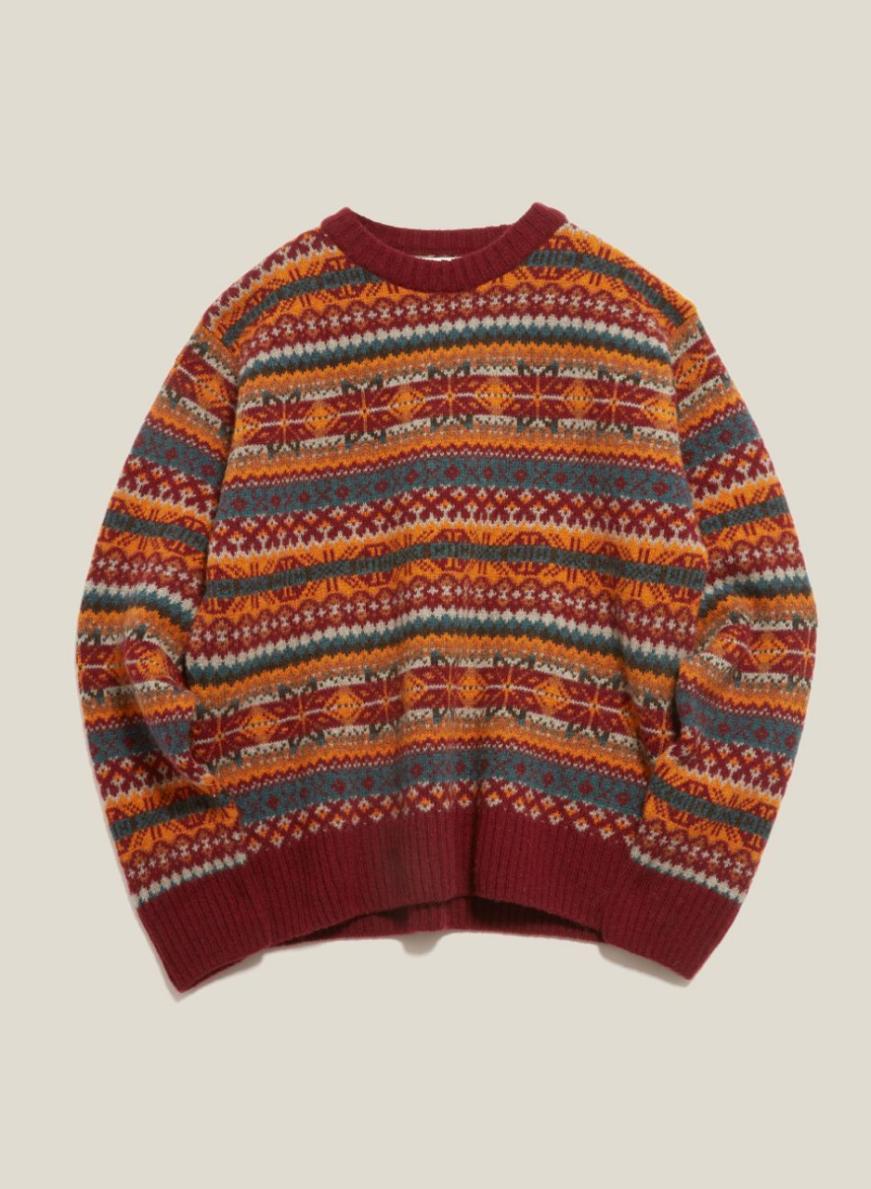 Duke Fair Isle Crew Neck Jumper Burgundy Multi | Men’s YMC
