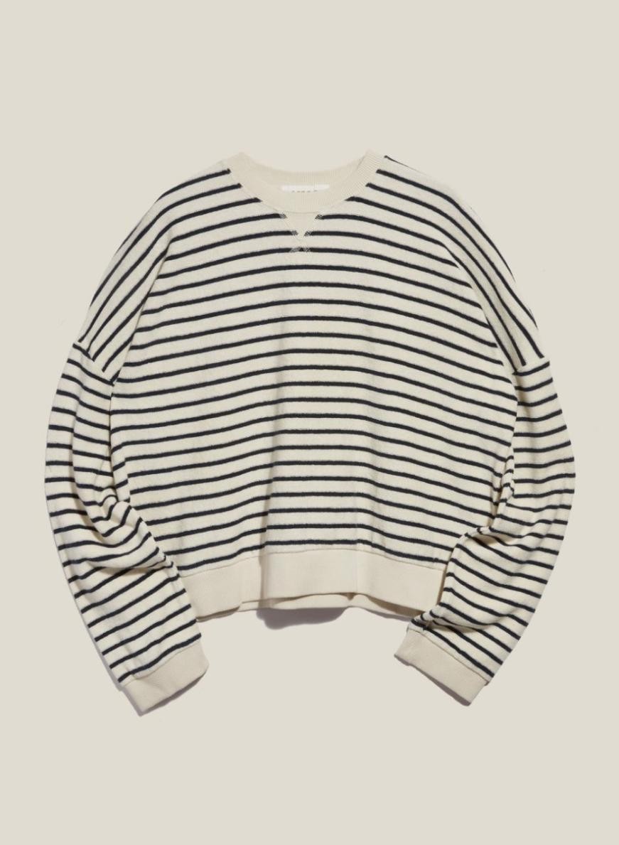 Classic sweatshirt in a yarn dyed stripe pattern, shaped to a cropped, relaxed fit from an organic cotton terry toweling.