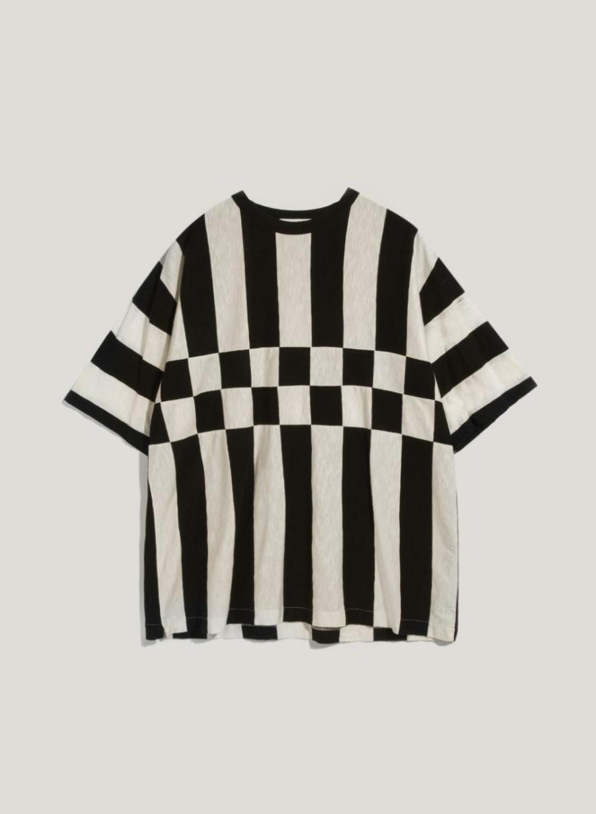 Camiseta de corte holgado con panel de cuadros en el pecho. Inspirada en la icónica discoteca Haçienda de Mánchester, que revolucionó la música en los años 80 y 90.
