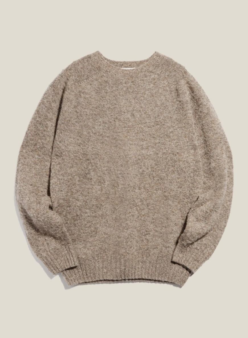 Jersey de cuello redondo sin costuras con un corte clásico. Elaborado con pura lana de cordero cepillada en Escocia, en una fábrica libre de residuos y plásticos que utiliza energía renovable.