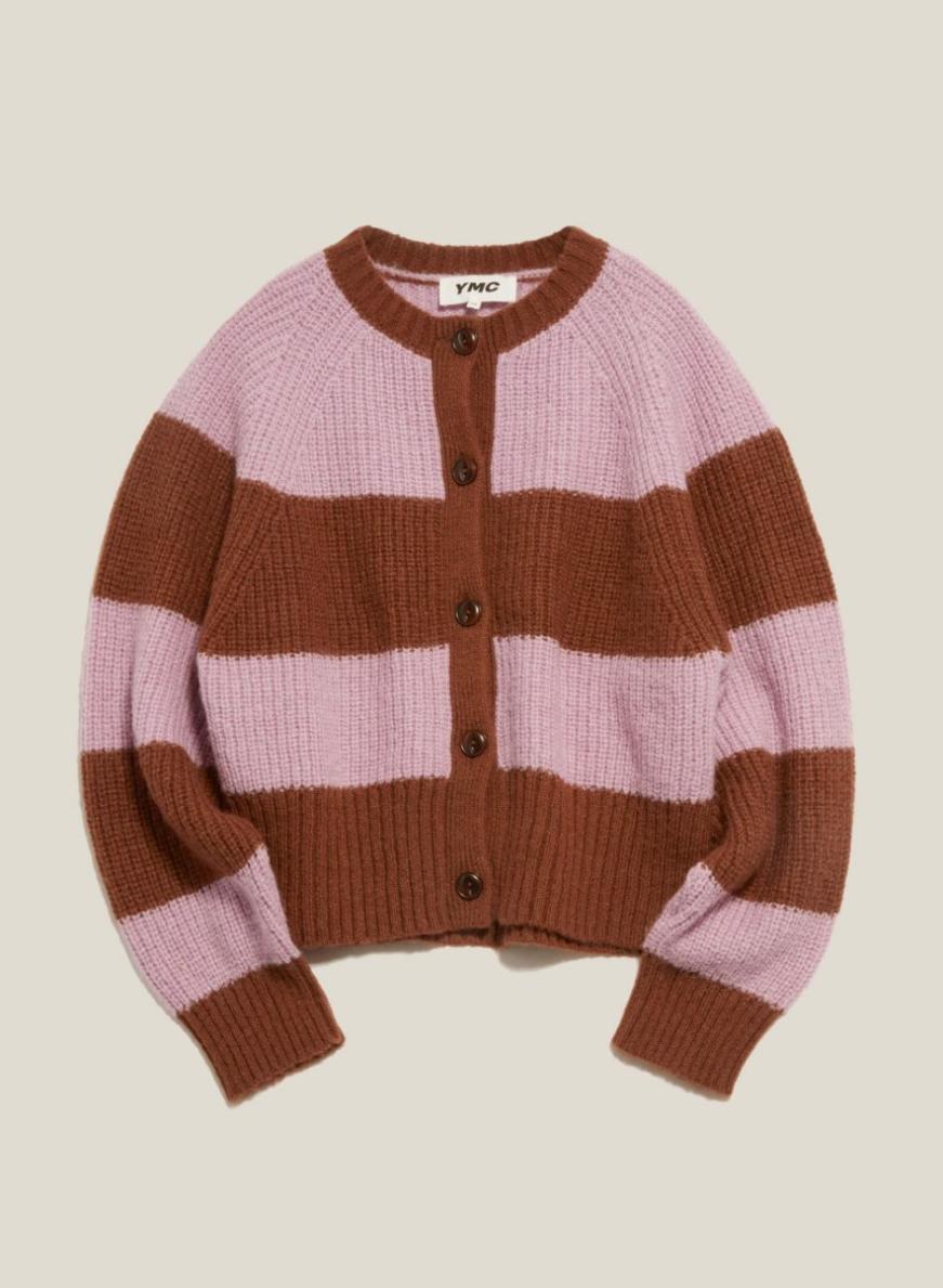 Foxtail Stripe Cardigan Brown Pink | Women’s YMC