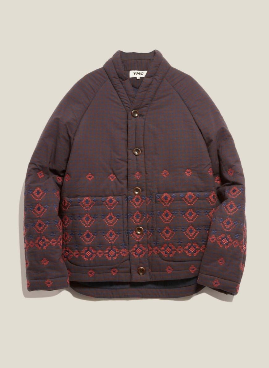 Veste Erkin en coton à carreaux vichy bleu marine et marron | Homme YMC