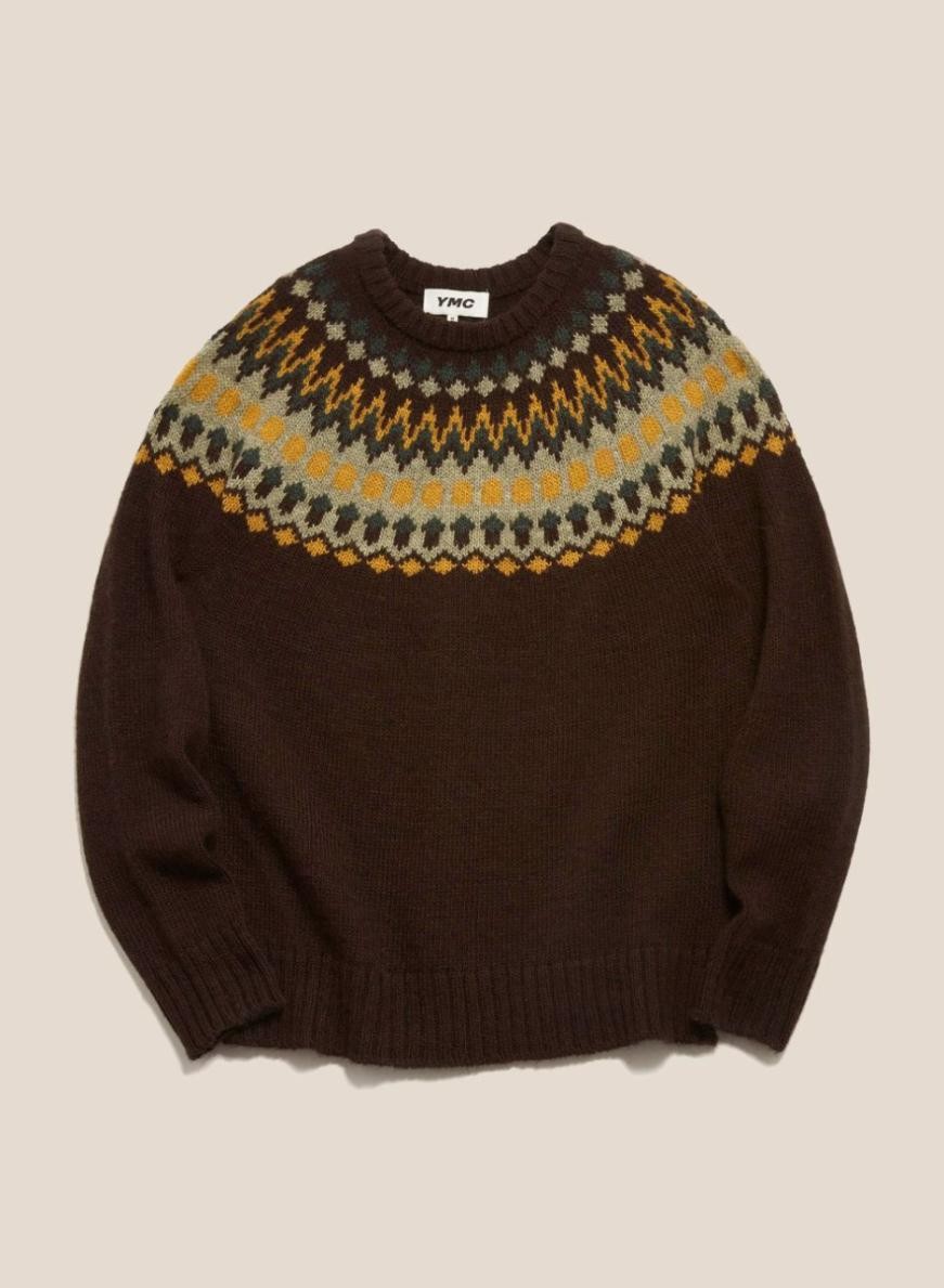 Pull Wings Fair Isle à col rond marron multicolore | Homme YMC