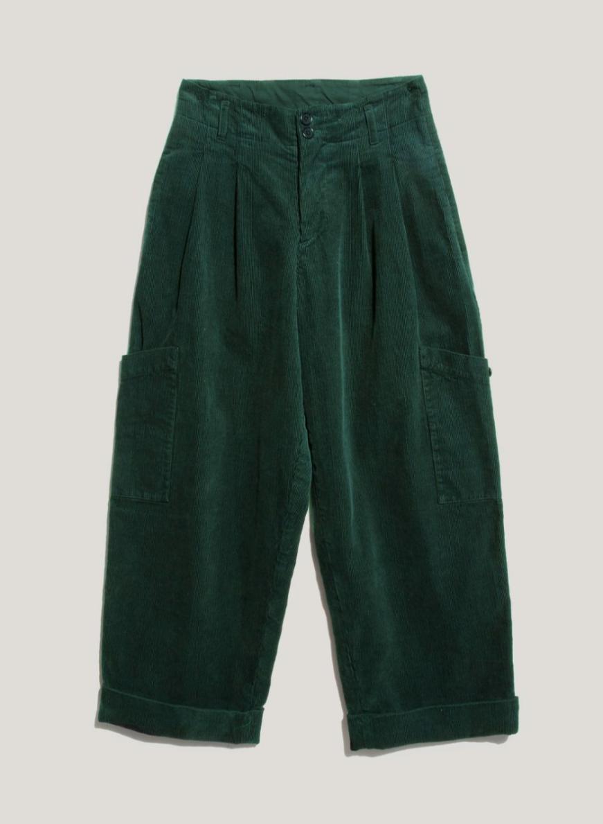 Workwear-inspired trousers with a high-waisted, wide leg design and side pockets. Cut from garment dyed corduroy.
