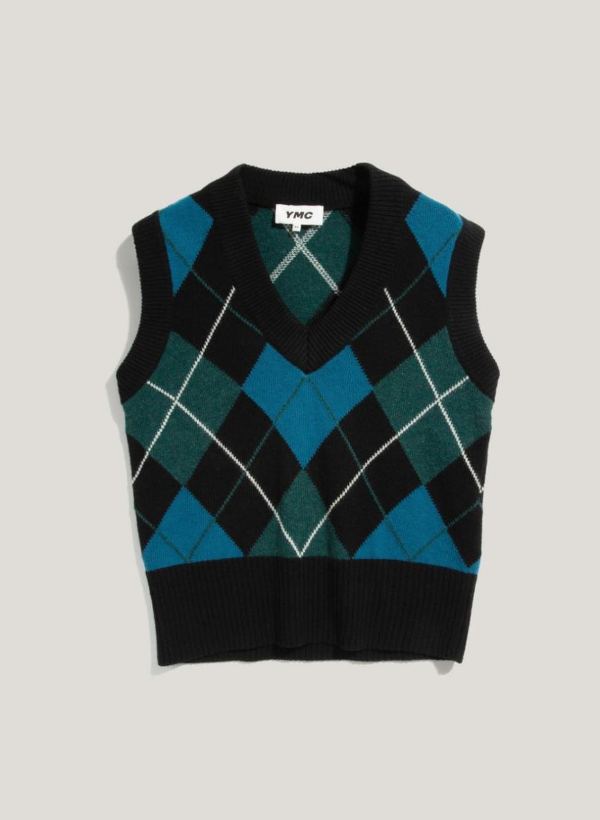 Heidi Argyle Knit Vest Black Multi | Women’s YMC