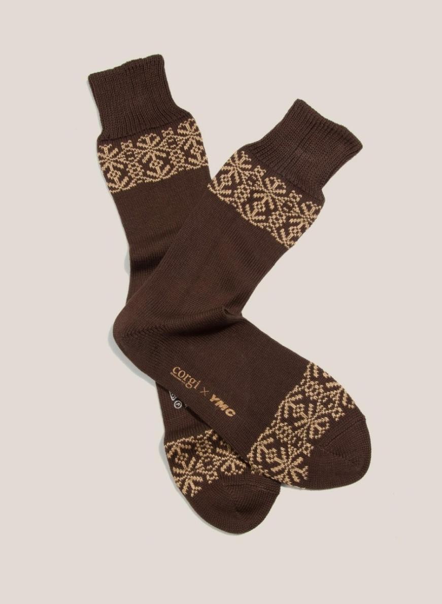 Smeđa pamučna čarapa Fair Isle | Muška YMC