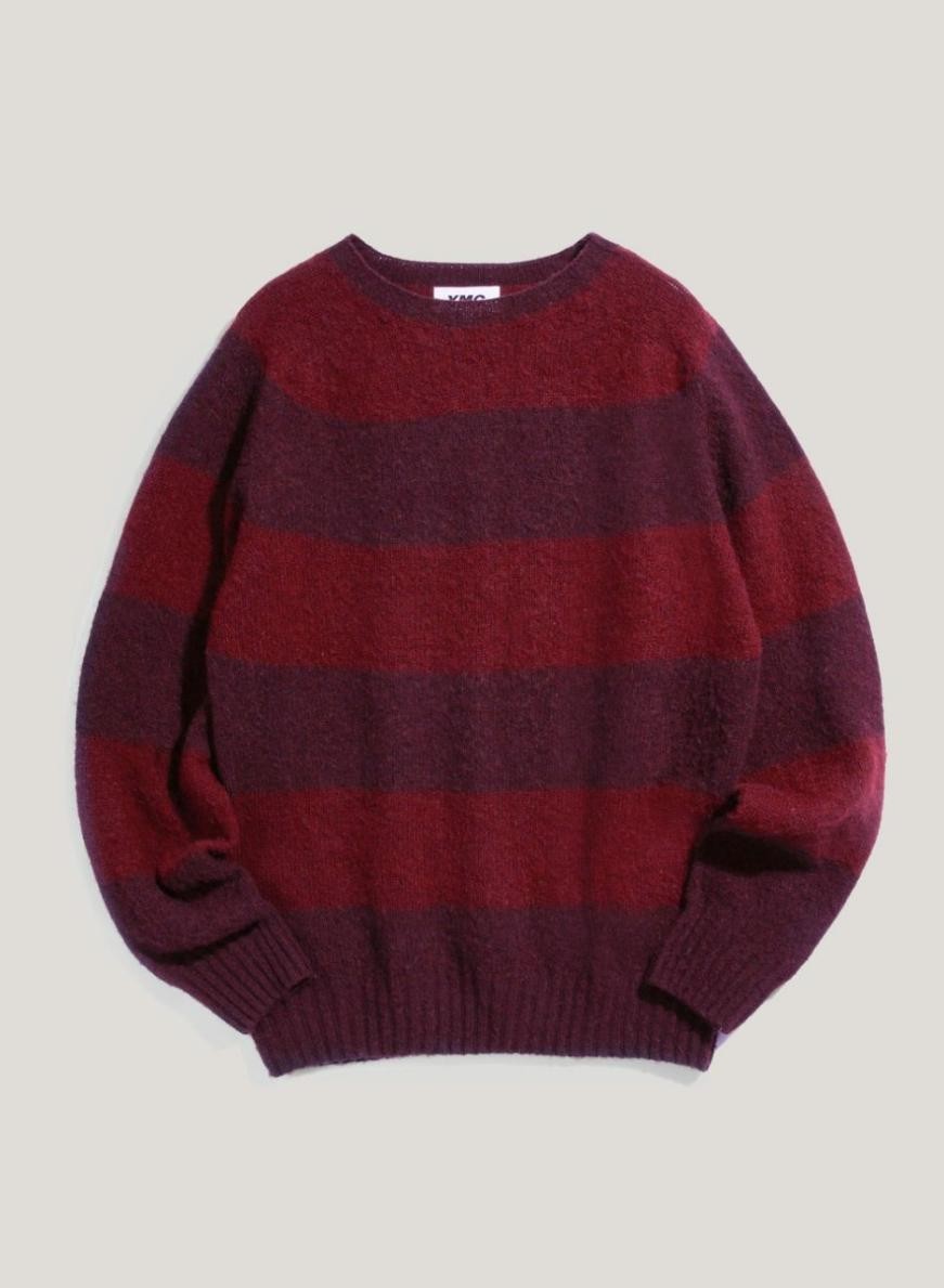 Suedehead csíkos, kerek nyakú pulóver, bordó | Férfi YMC