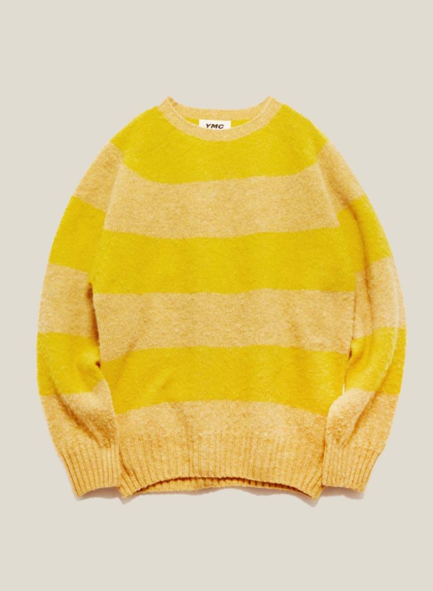 Suedehead Stripe Crew Neck Jumper Yellow Sand | Men’s YMC