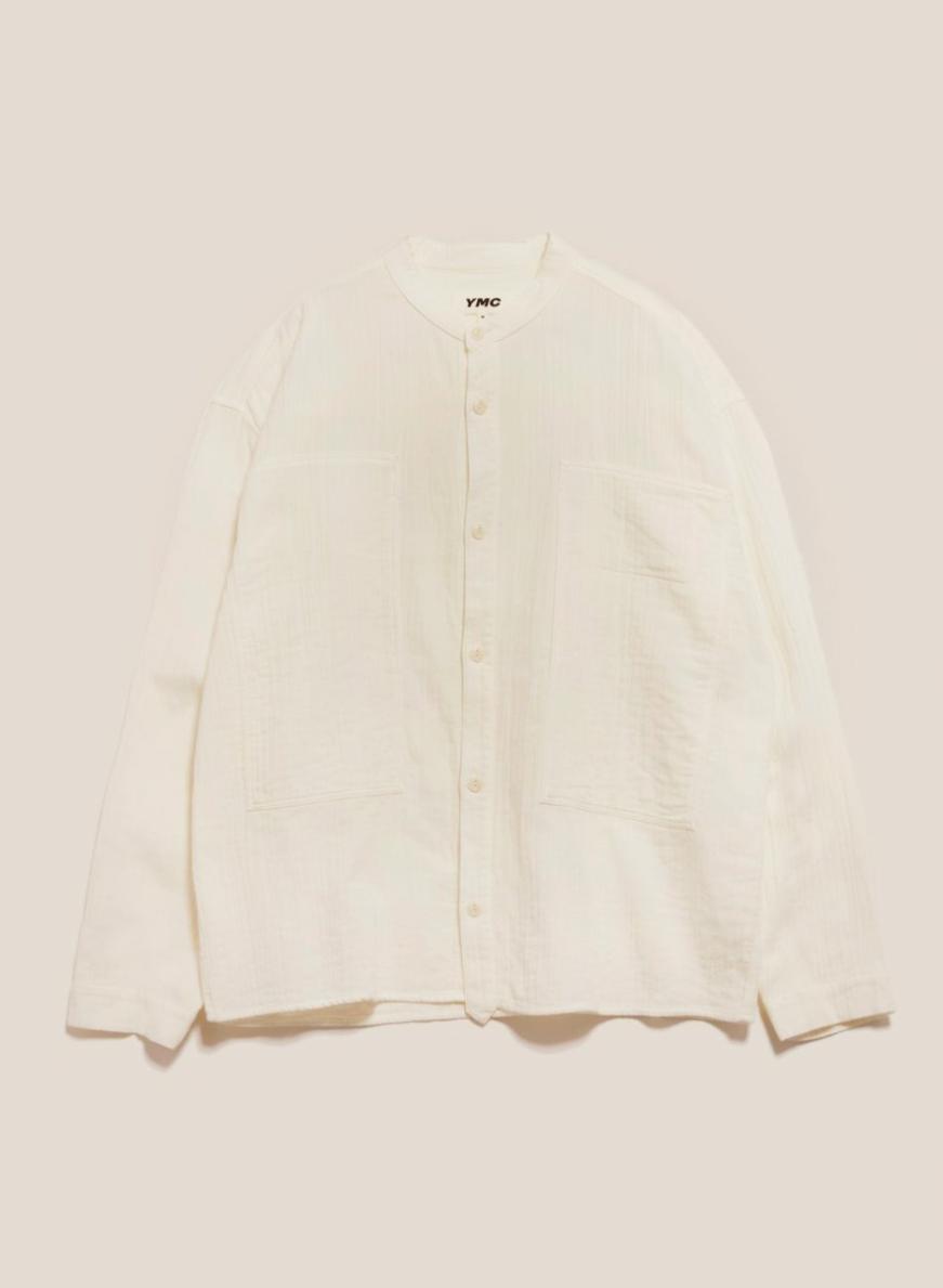A relaxed and comfortable shirt in a doublecloth texture and finished with a grandad collar.