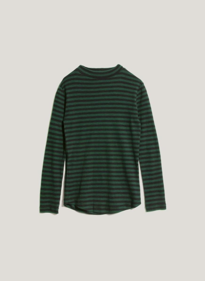Koszulka z bawełny High Rain w paski, zielono-czarna | Damska YMC