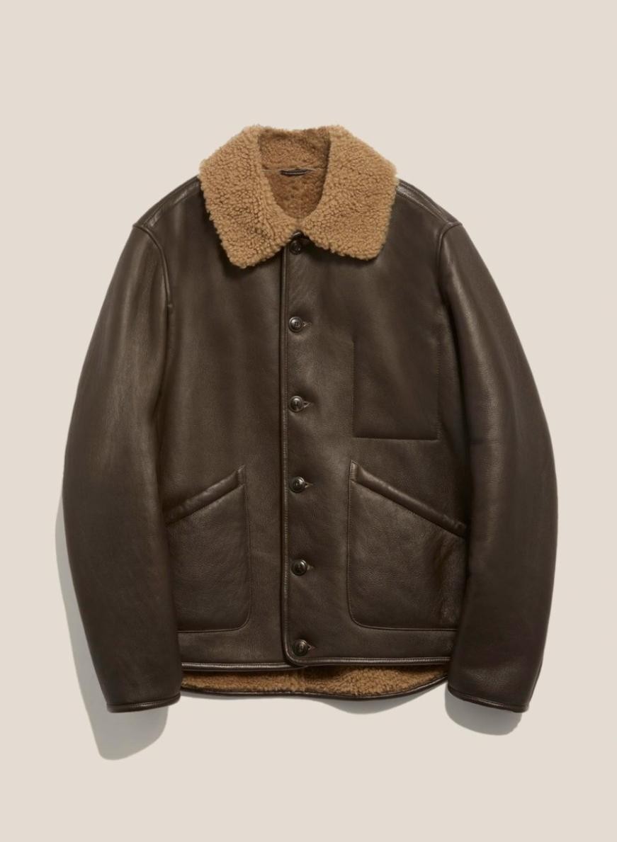 Nowa wersja naszej oryginalnej skórzanej kurtki Brainticket Mk1, z większym kołnierzem. Inspirowana klasycznymi kurtkami z owczej skóry.