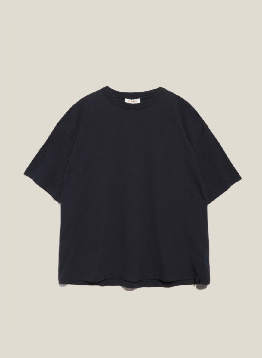 Camiseta oversized de gola redonda com ombros caídos. Fabricada em Portugal com nosso parceiro de produção com certificação ética, utilizando algodão orgânico texturizado.