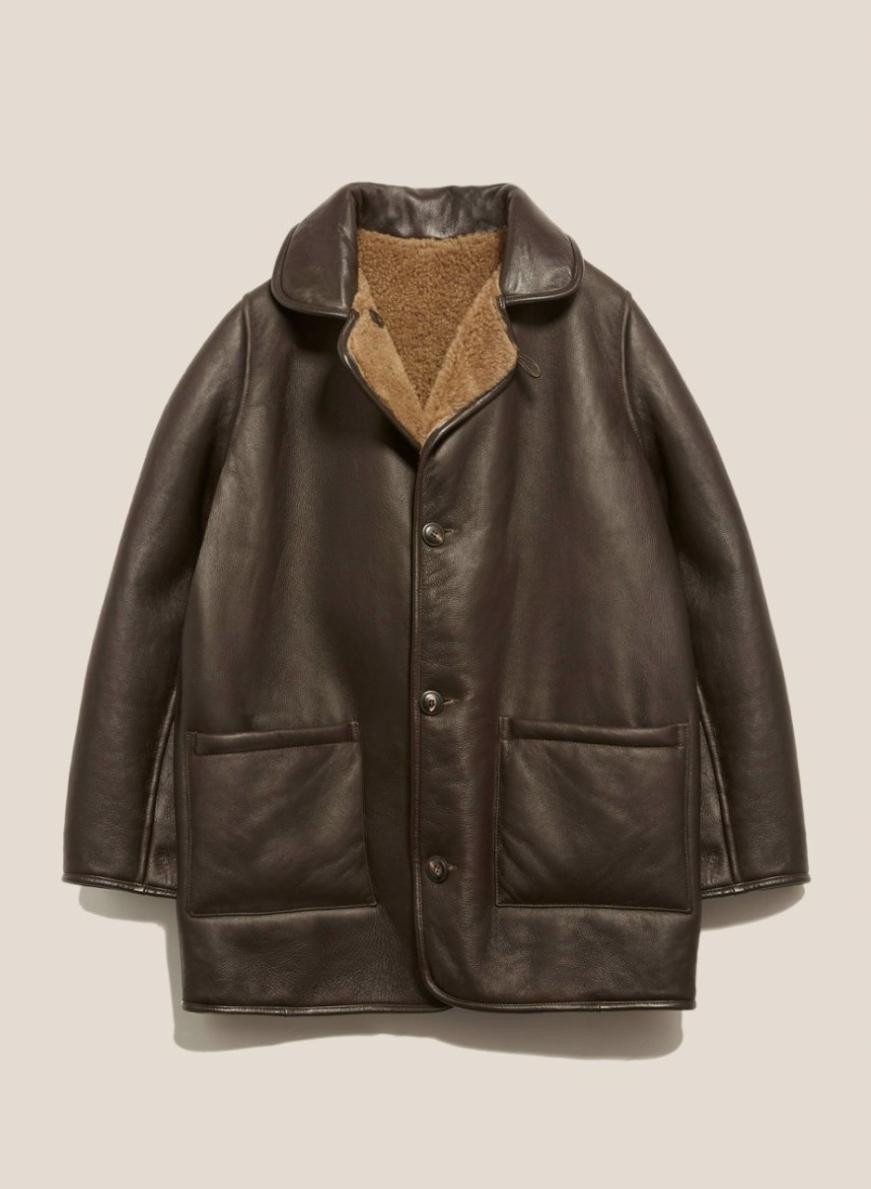 Reversible leather coat combining a curly pile sheepskin with soft brown leather. Inspired by the preferred outerwear of heavy metal pioneers Black Sabbath.