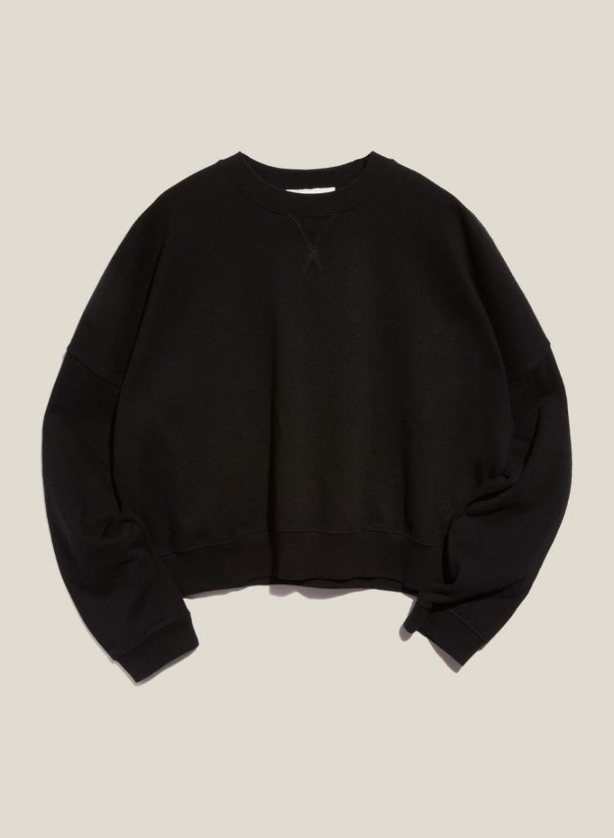 Mikina s farbenou látkou v jednofarebnej farbe, skrátený, voľný strih z organickej bavlny so slučkovým chrbtom.