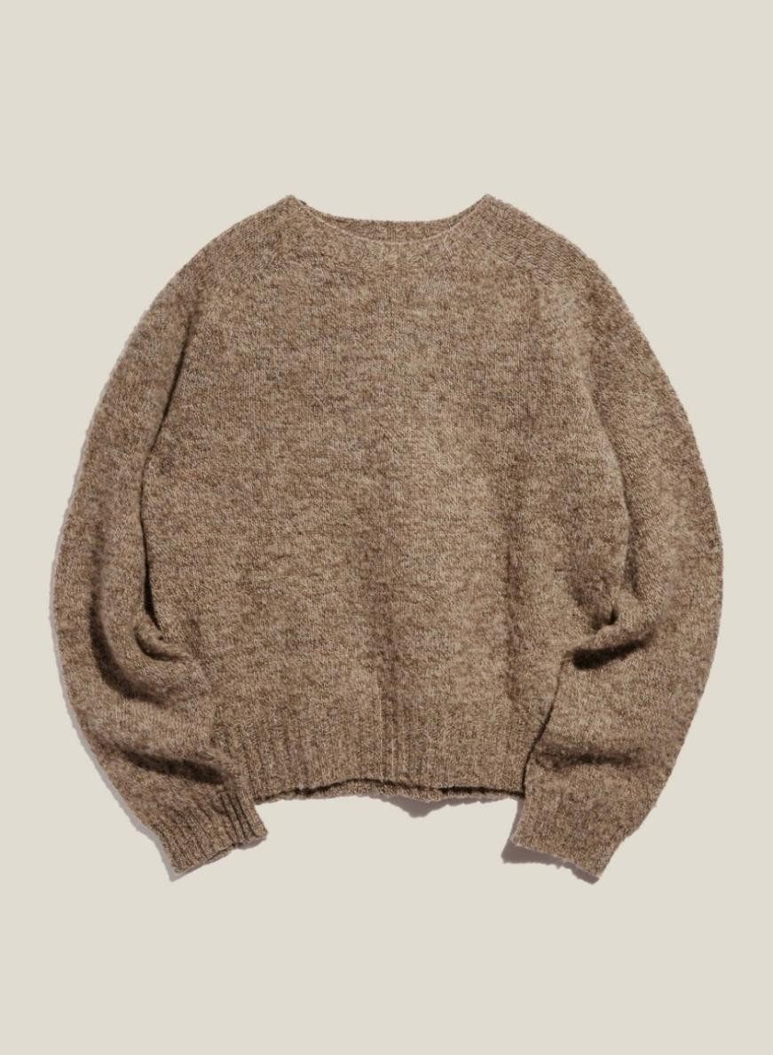 Veľký pletený top s okrúhlym výstrihom z česanej jahňacej vlny, vyrobený v Škótsku v továrni s nulovým odpadom a bez plastov s využitím zelenej energie. Voľný strih s raglánovými rukávmi.
