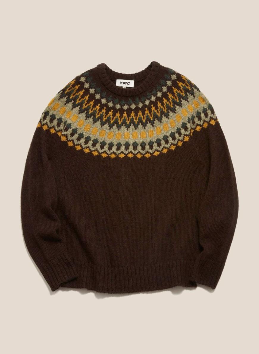 Wings Fair Isle Crew Neck Jumper Brown Multi | Men’s YMC