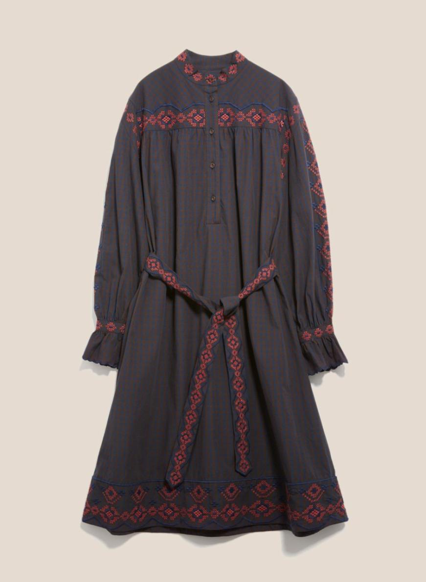 70s-style dress with long sleeves and a belted design. Comes in a Gingham check, and takes its name from the hippy invasion of Aberystwyth 50 years ago.