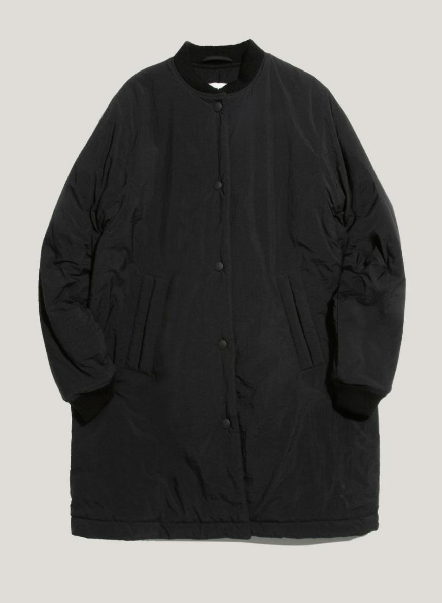 Mid-length take on a bomber jacket, finished with a round baseball-style collar.